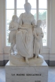 Gruppo in marmo raffigurante una giovane madre seduta, nell'atto di affidare una medaglia al figlio, in piedi alla sua destra, mentre dalla parte opposta la figlia guarda tristemente verso il basso. La donna, con i capelli lunghi raccolti alla nuca, veste un elegante abito di foggia moderna, lungo fino ai piedi, caratterizzato da un'ampia scollatura e una cintura alla vita.
