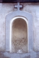 Nicchia incassata ad arco delimitata da una cornice e sormontata da una croce. Nella nicchia, che non presenta immagine sacra, è visibile un piccolo piedistallo che probabilmente fungeva da sostegno ad una statua. Sotto l' edicola è inserito nel muro un reggicandela in ferro.