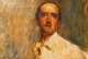Tela dipinta ad olio raffigurante l'autoritratto dell'artista. Egli è ripreso a mezzo busto, di lato, mentre la faccia è ritratta frontalmente. La tela è sbilanciata poiché la parte destra è completamente occupata dal busto e una spalla tenuta indietro, che porta leggermente indietro anche la testa, mentre la parte sinistra ha solo la firma dell'autore.