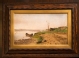 Quadro con cornice in legno marrone scuro, intagliata, modanata, con passe-partout dorato, raffigurante un paesaggio di palude in una giornata grigia, contro l'argento del cielo e dello specchio dell'acqua risalta l'arida terra, raramente coperta di un manto di tenue verde. In primo piano la bassa marea trae in secco una barca.