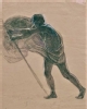 Disegno a matita verde e viola con contorni accentuati a tempera bianca, su cartoncino avorio, raffigurante lo studio di un uomo che rema. La figura è presa da tre quarti da destra. Tiene le gambe una davanti all'altra e con esse bilancia le braccia, entrambe distese, che afferrano un'asta obliqua sulla sinistra. Un ampio panneggio svolazzante avvolge il bacino del nocchiero dispiegandosi verso sinistra.