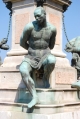 Statua in bronzo di uomo atletico, giovane e dai tratta negroidi, con le mani legate dietro alla schiena e il dorso piegato in avanti e ruotato verso destra. Tiene una gamba piegata e poggiata sul primo scalino, mentre l'altra piu distesa e poggia sul secondo.