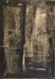 Dipinto raffigurante un paesaggio industriale in chiave astratta.