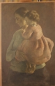 Dipinto a olio su tela raffigurante una figura femminile in piedi, tre quarti di figura, con una bambina in braccio. La donna ha la testa ruotata verso sinistra e lo sguardo rivolto verso il basso, mentre la bambina, vista di spalle, tiene una manina sollevata e rivolge lo sguardo nella stessa direzione.
