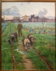 Dipinto a olio su tela raffigurante un paesaggio campestre con un ragazzo che sorveglia tre maiali. Il primo piano dell'opera è interamente occupato da una stradina erbosa, vista in prospettiva, che prosegue dritta verso l'orizzonte.