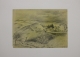 Il disegno raffigura una veduta di un tipico paesaggio collinare toscano. In primo piano una collina con degli alberi e un sentiero e sullo sfondo, sulla destra un casolare di campagna circondato da alberi.